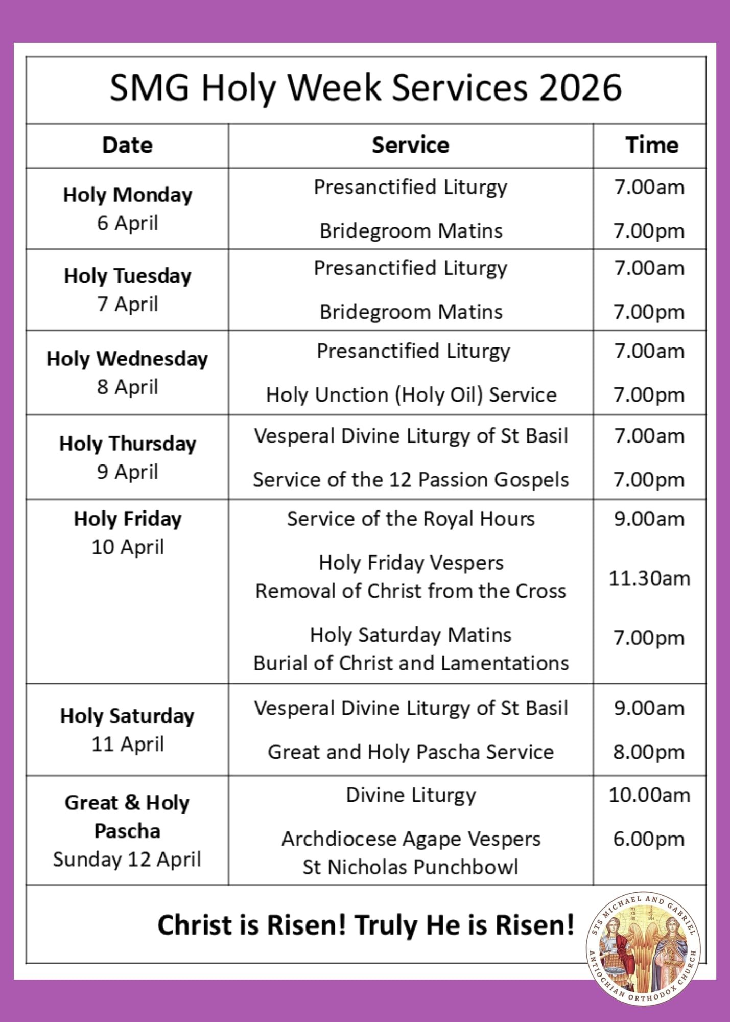 All services in English | Sunday Matins 9.00am & Divine Liturgy 10.00am | Evening Liturgy (in Arabic) 1st Sunday of the month 6.00pm |